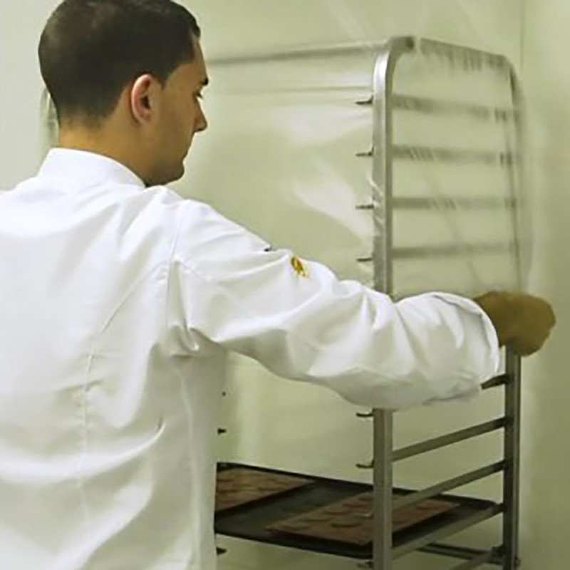 Protecció higiènica d'un sol ús per a carros grastronòmics, fàcil de fer servir, es serveix en bobines a través d'un dispensador que es penja a l'alçada del carro. Producte cada dia mes indispensable per respondre adequadament al controls de qualitat mes exigents.